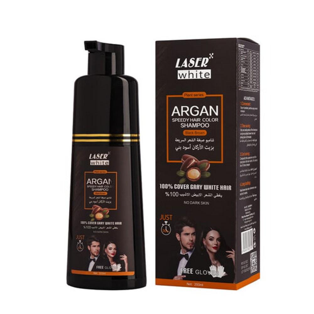 شامبو صبغة شعر بزيت الارجان لتغطية الشيب أسود بني 200 مل - ليزر وايت